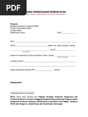 Surat Pengesahan Pendapatan Mara Letter 7saudara Com